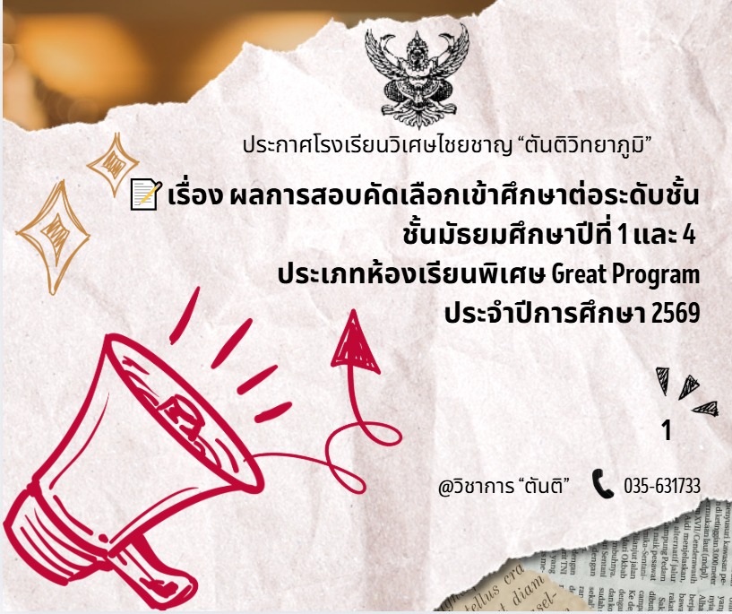 ระดับชั้นมัธยมศึกษาปีที่ 1 และ 4 ประจำปีการศึกษา 2569